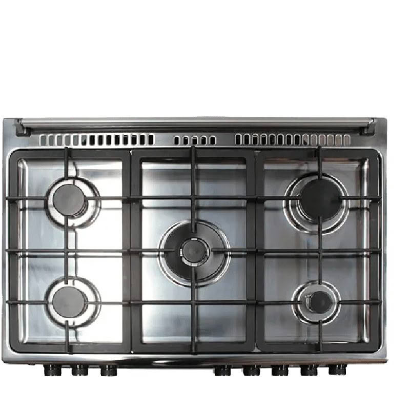 • Features a 5-burner gas hob and a large 126L combined grill and oven, ideal for roasting and baking.