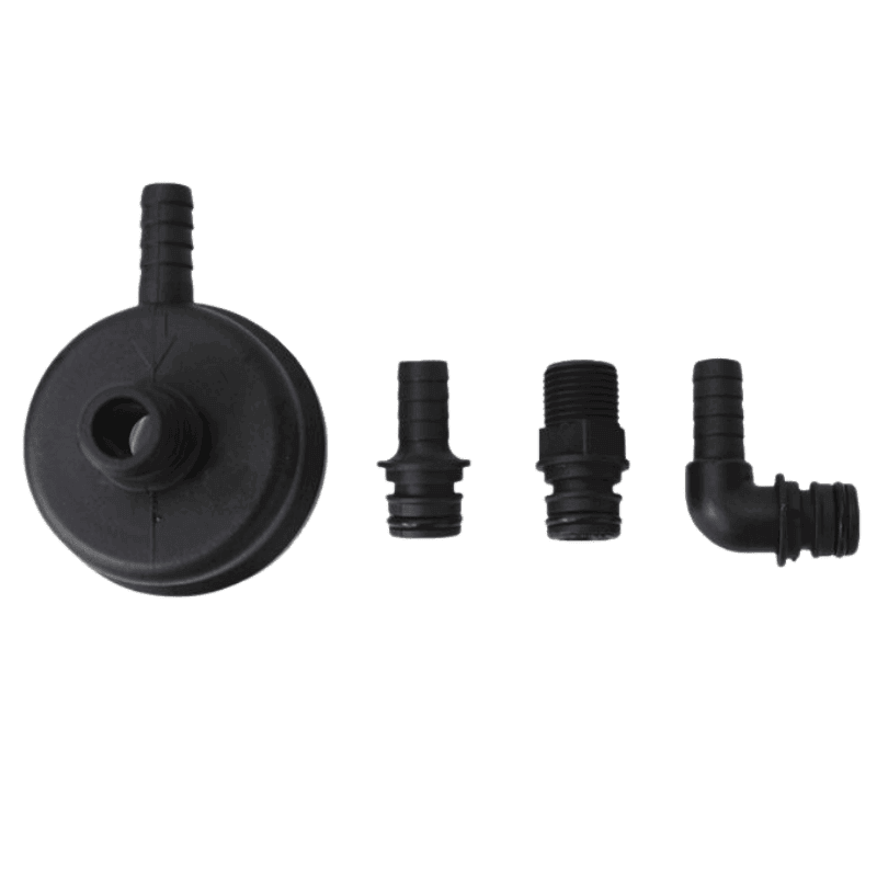 • Includes: 1x 1/2″ straight barb, 1x 1/2″ 90° barb, 1x 1/2″ threaded end