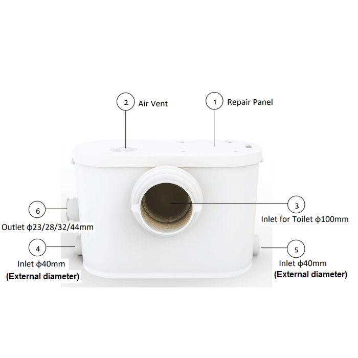 • Discharge Pipe Diameters: 23mm/28mm/32mm/44mm